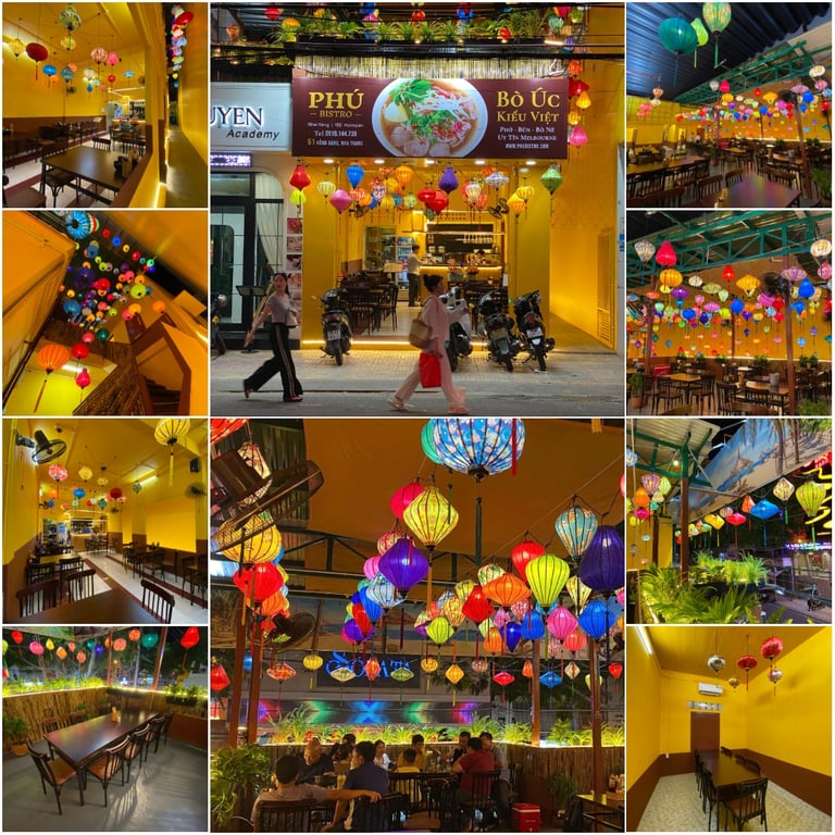 Nằm ngay trung tâm Nha Trang, Phú Bistro mang đến cho bạn đa dạng món ăn từ phở truyền thống, bún bò thơm ngon, đến những phần cơm đậm đà như Luklak, bò xào sả ớt, cùng các món lẩu, bít tết Úc, và hải sản tươi ngon, tất cả đều được chế biến theo phong cách Việt Nam đậm đà.
